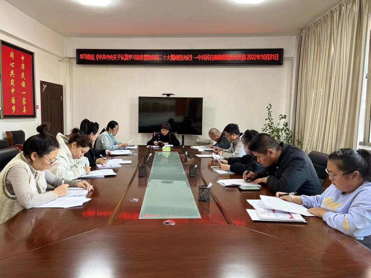 “学习宣传贯彻党的二十大精神,是当前和今后一个时期的首要政治任务。”按照旗委部署要求,中共科右前旗委编办党支部组织全体干部开展学习传达《中共中央关于认真学习宣传贯彻党的二十大精神的决定》专题会。